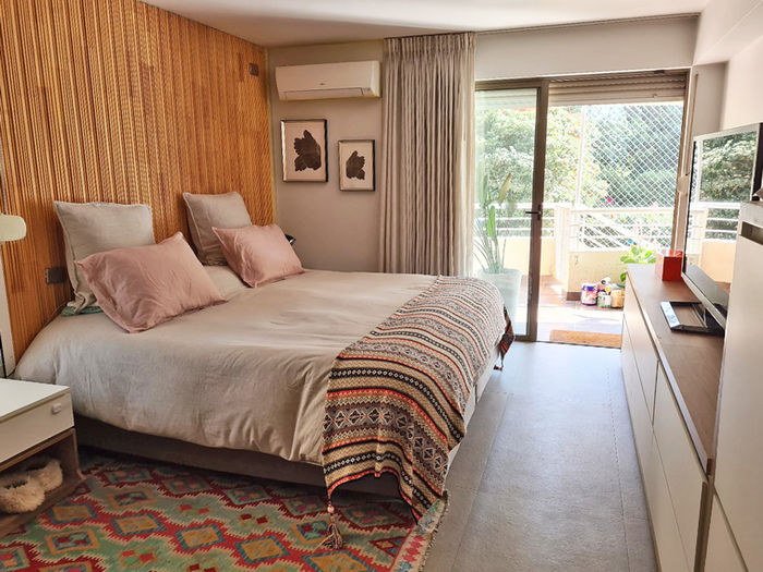 Dormitorio principal en suite con walk in closet. Segundo dormitorio en suite y tercer dormitorio con baño afuera. Dormitorio y baño de servicio.