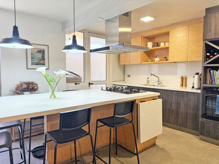 Hall de entrada, amplio living y comedor con salida a terraza. Moderna cocina completamente equipada con isla central y logia.